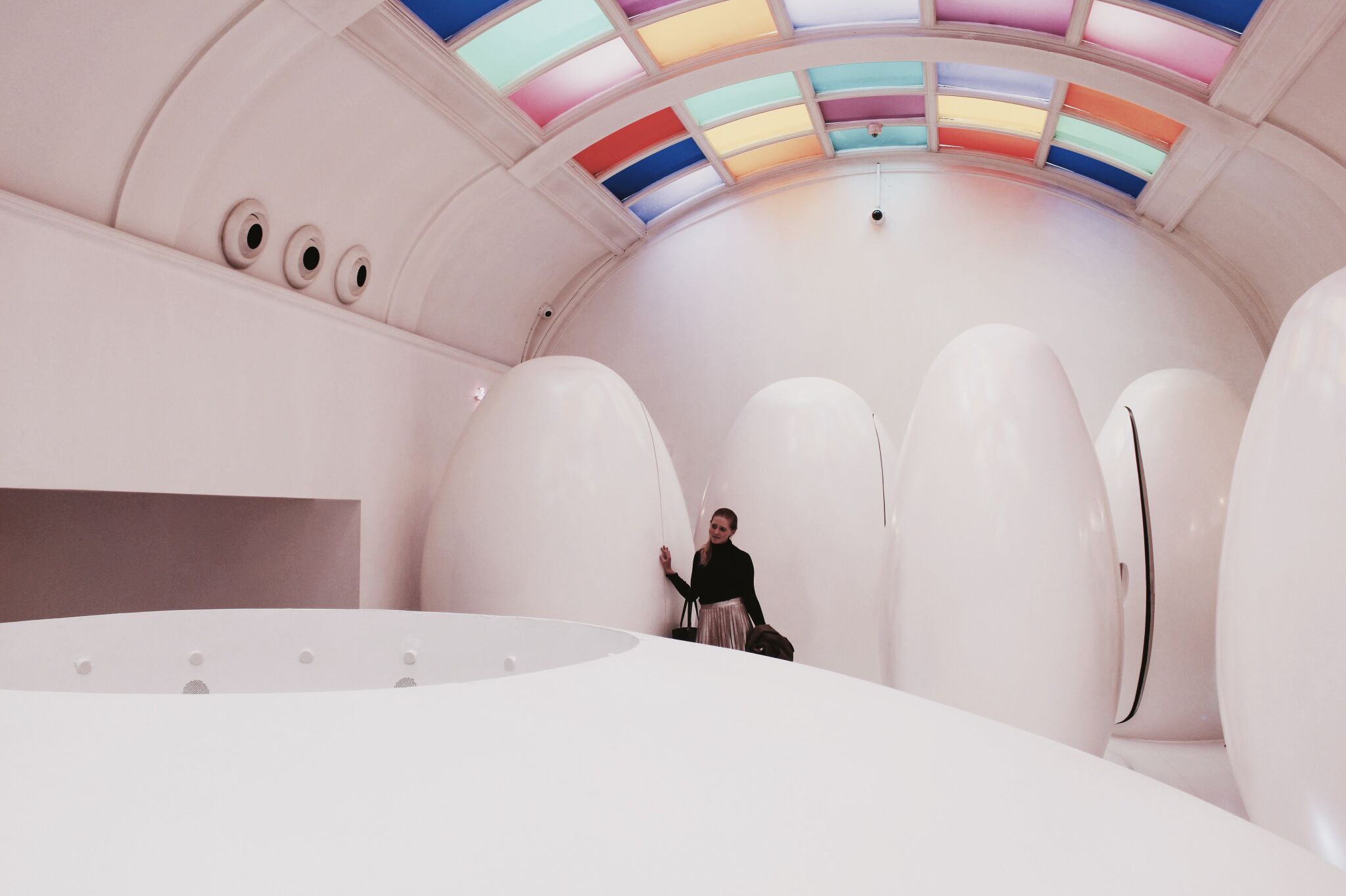The bathrooms are also a noteworthy feature. Each individual toilet is located inside what looks like a personal “Eve” from the movie, wall-E – in order words, a tall, oval, spacecraft for you to do your business and enjoy jazz music. Be warned, it’s dark and you’ll want to laugh the whole time. The poor cleaning ladies seemed to have their duties delayed (not meant a bathroom joke, I promise ha) by all the selfie-taking (I’m also guilty).